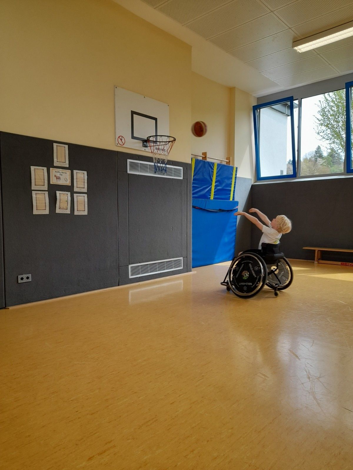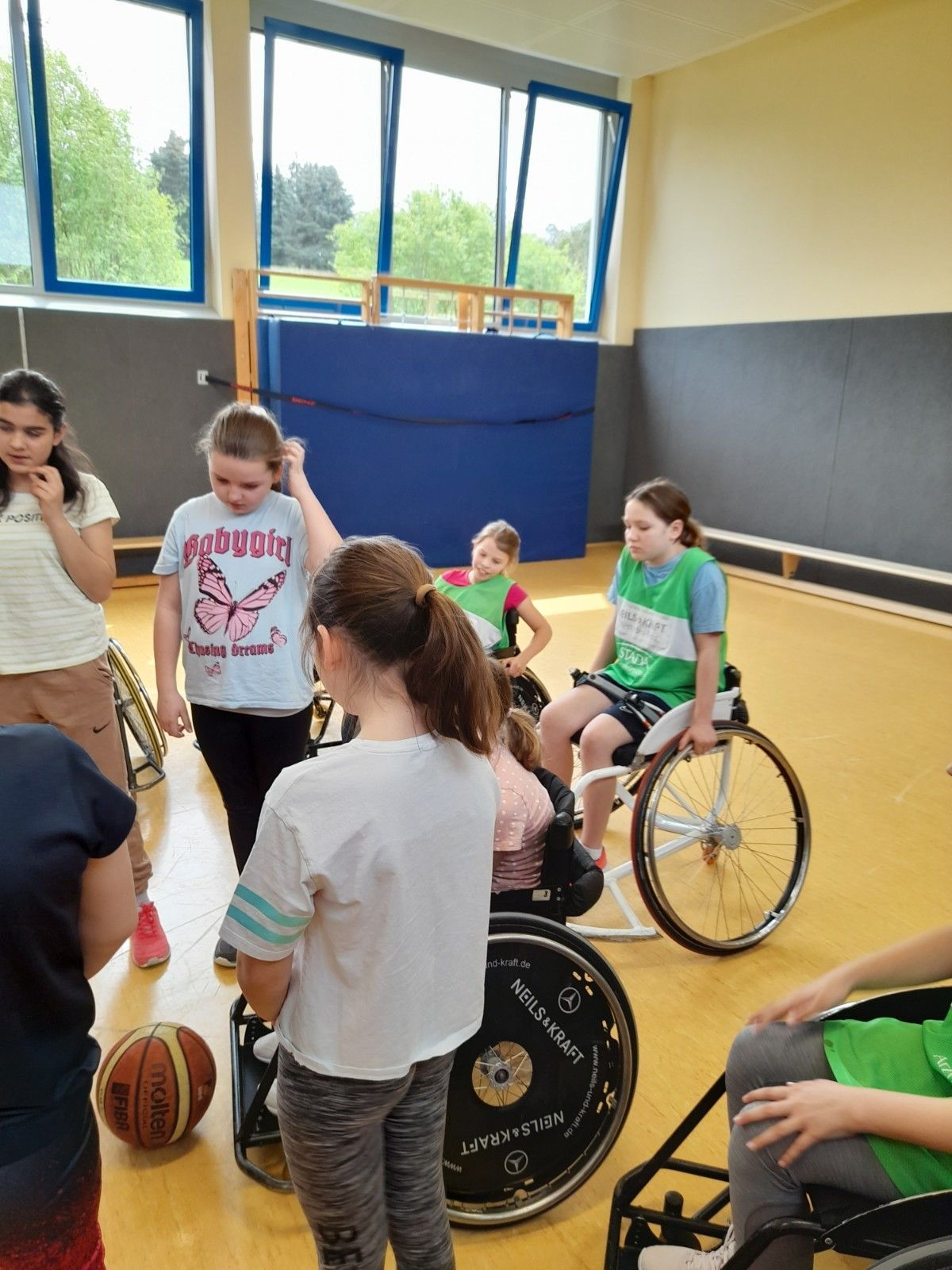 Am Montag den 24.4.2023 bekam die Klasse 4b Besuch vom RSV-Lahn-Dill. Als erstes hat die Klasse die Grundregeln des Rollstuhlbasketballs erklärt bekommen. Danach durften die Kinder die Rollstühle ausprobieren. Sie haben ausprobiert wie man rückwärts und vorwärts fährt. Sie haben mit den Rollstühlen Fangen gespielt. Danach übten sie wie man den Ball mit dem Rad aufhebt. Am Ende haben sie im Vier gegen Vier Basketball gespielt. Ganz am Ende hat der Trainer uns Hefte über die Mannschaft gegeben und jeder der wollte hat ein Autogramm bekommen.