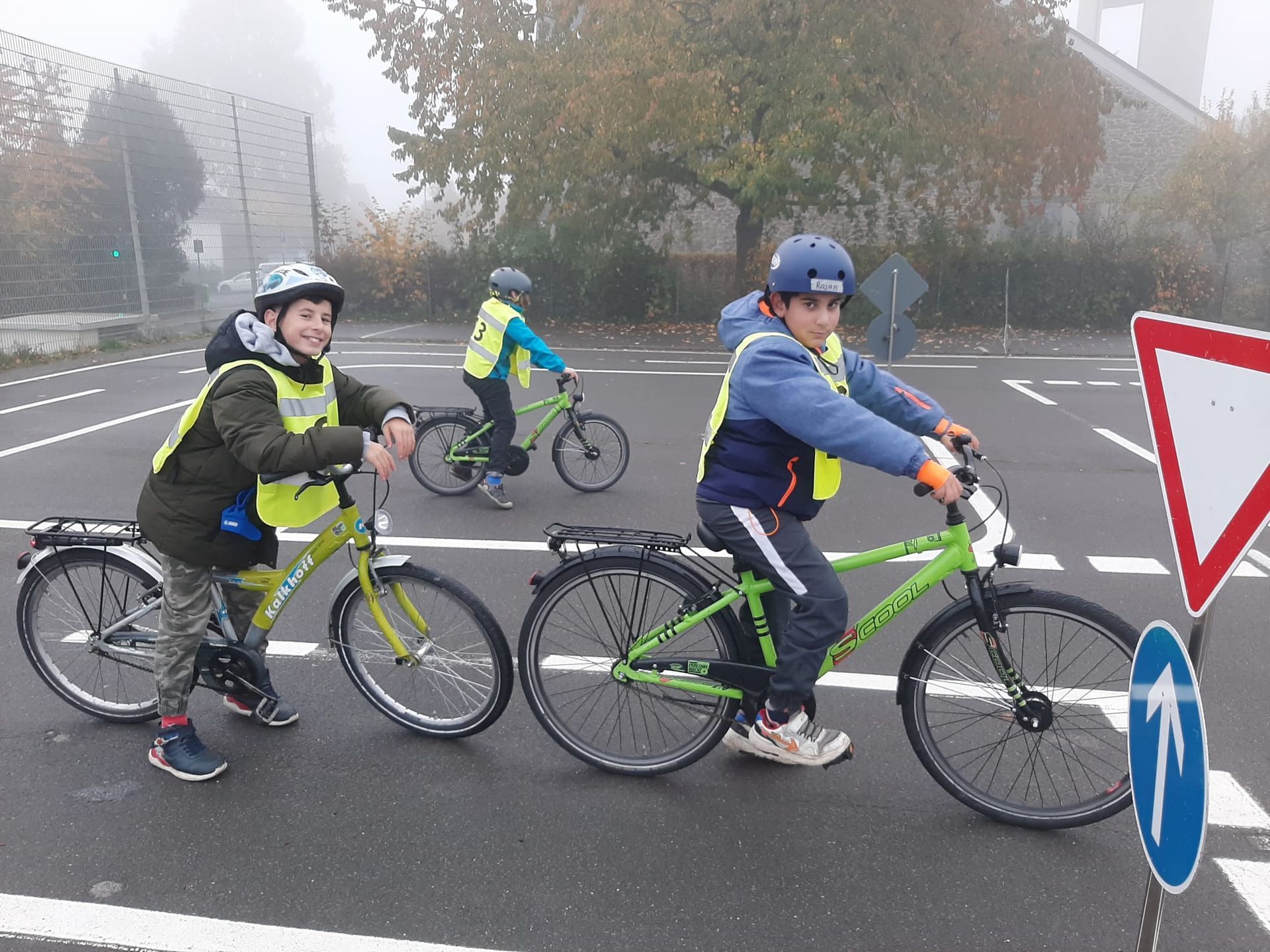 Wir wurden von dem Polizisten Andi gelehrt. Am Anfang bekamen wir Startnummern, die wir angezogen haben. Danach sind wir die Strecke zu Fuß abgelaufen und danach sind wir sie mit dem Fahrrad gefahren. Am Anfang gab es gar keine Schilder, da galt rechts vor links. Dann kamen Vorfahrtsschilder dazu. Am besten hat mir das Spiel Monopoly gefallen. Das ist wie das normale Spiel, nur auf Fahrrädern. Wenn man einen Fehler machte, musste man aussetzen und ins „Gefängnis“ gehen.