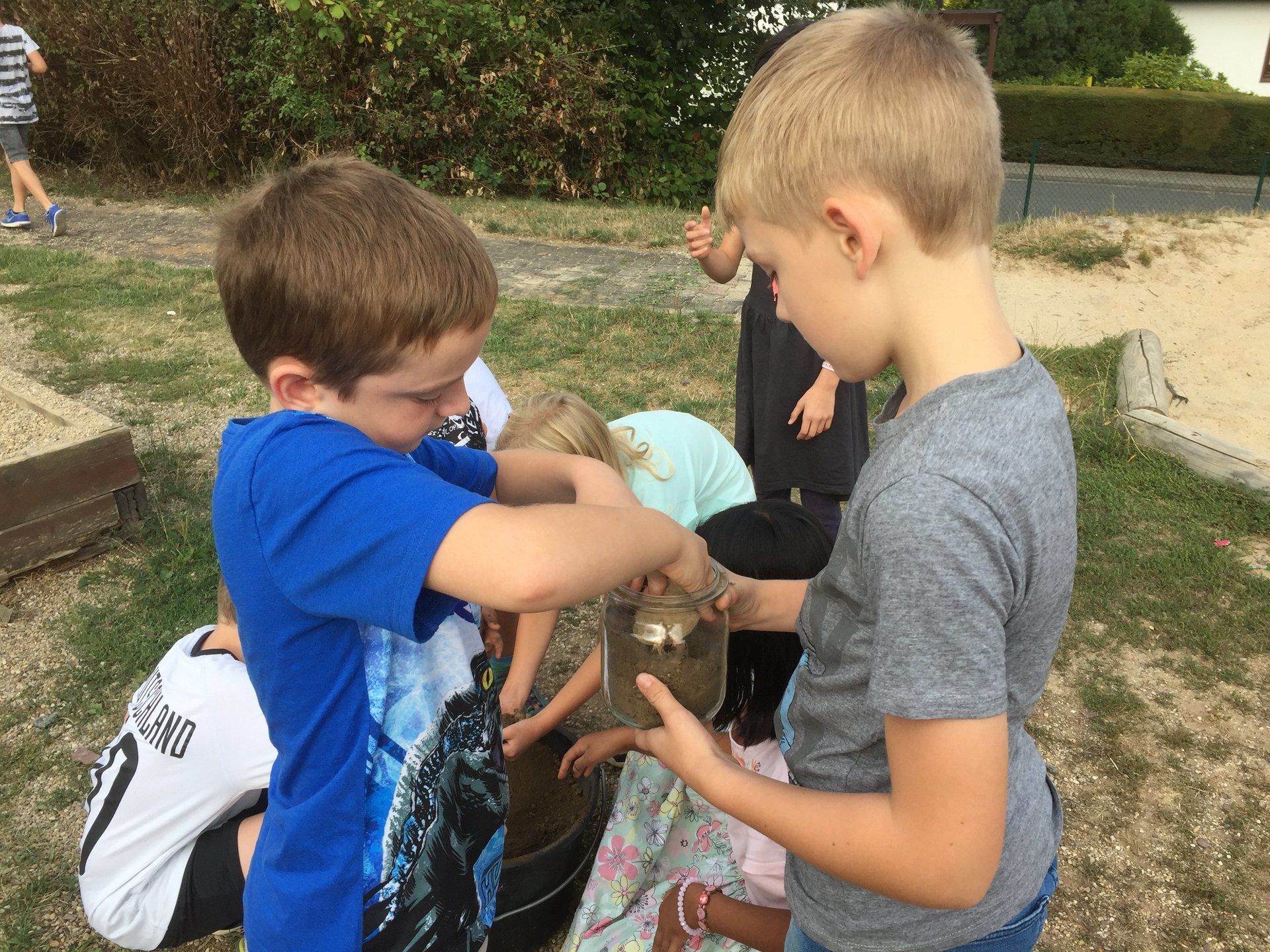 Am Ende des Tages haben wir noch etwas gebastelt und zwar haben wir Erde, Blumensamen, Granulat und Wasser in einer Schüssel vermengt und mit den Händen zu einer Kugel geformt.