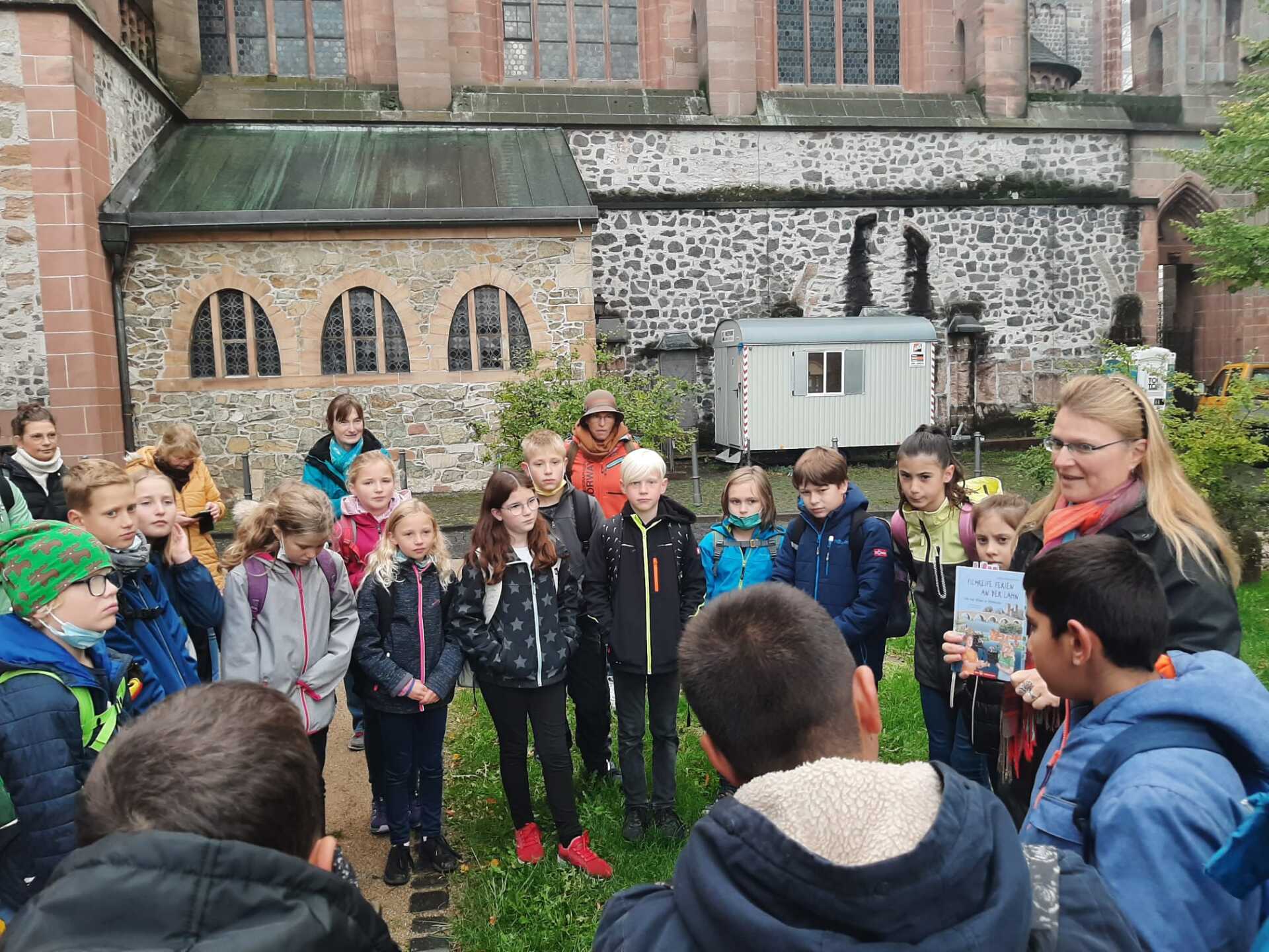 Die Lesung war zwischen September/Oktober 2022 für die Jahrgänge zwei, drei und vier. Frau Nesseldreher hat uns „Filmreife Ferien an der Lahn“ vorgelesen. Wir haben uns mit Frau Nesseldreher am Dom getroffen. Dann sind wir neben den Dom gelaufen. Da hat Frau Nesseldreher den ersten Teil vorgelesen. Danach sind wir in den Dom gegangen. Da hat sie uns erklärt, dass es katholische und evangelische Kirchen und Menschen gibt. Dann sind wir in den Lottehof gelaufen. Dort hat sie uns den Rest vorgelesen und jedem ein Bonbon gegeben. Danach durften wir mit Kastanien spielen. Uns hat besonders gut gefallen als wir im Dom waren. Am Schluss haben wir das Lied „Pink ist für Prinzessinnen“ gesungen.