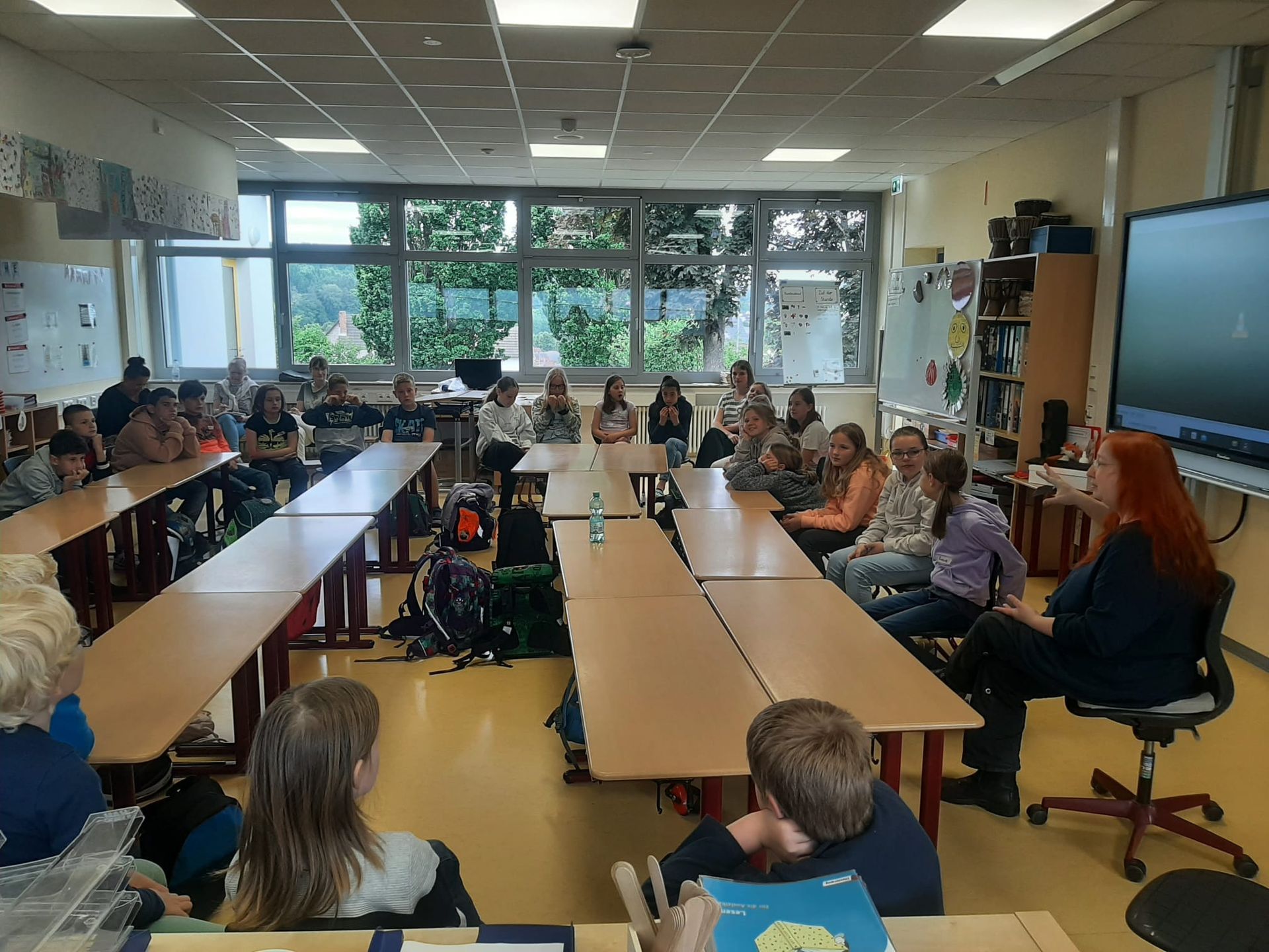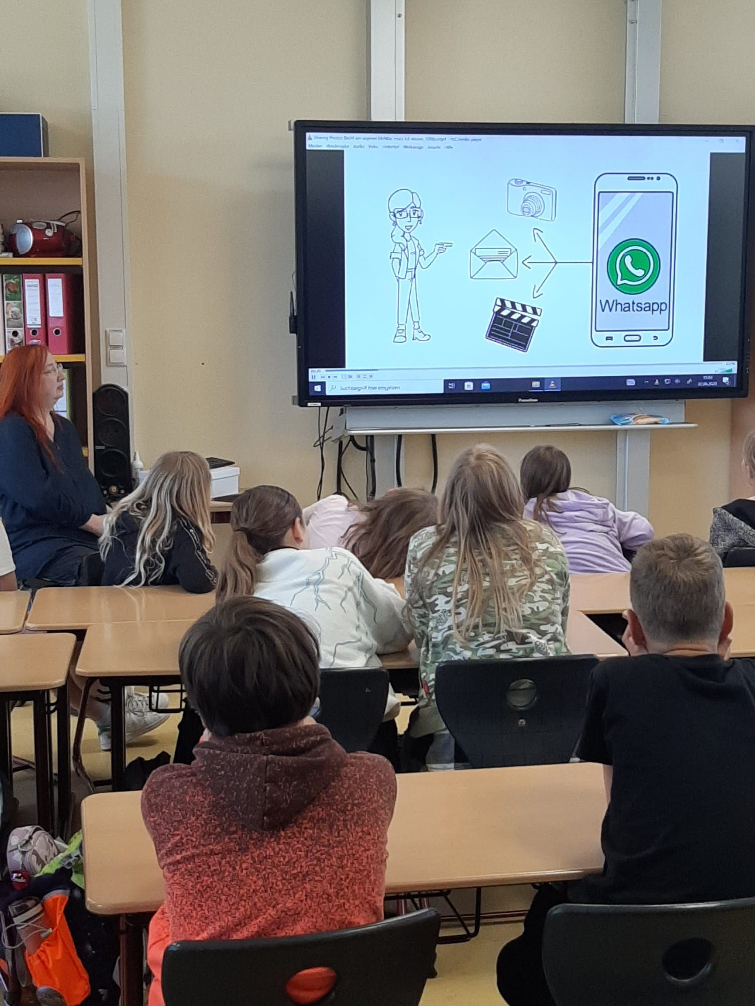 Am 02.06.2023 haben die vierten Klassen unter der Anleitung von Frau Weiß von der 1. bis zur 6. Stunde einen Medienworkshop durchgeführt. Dies passt zu unserer aktuellen Unterrichtseinheit im Sachunterricht zum Thema "Umgang mit Medien". Wir haben von Frau Weiß Fragen gestellt bekommen. Dann musste sich die Klasse dazu positionieren, entweder zu ja, nein oder in die Mitte. Sie hat uns sehr viel erklärt und wir haben drei Kurzfilme geschaut. Wir haben verschiedene Themen besprochen, z.B. Urheberrecht, Recht am eigenen Bild, Theorie zu Medien und Regeln im Umgang mit Medien.