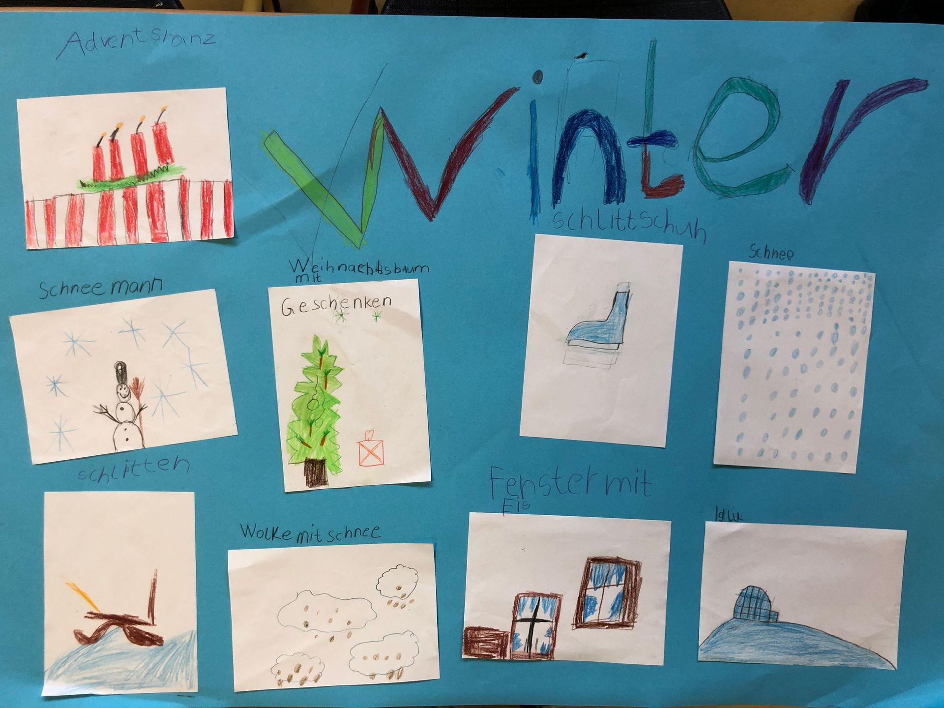 Am Anfang hat die 1a Bilder zu den Jahreszeiten zugeordnet. Danach sollten sie sich in Teams aufteilen und sich eine Jahreszeit aussuchen. Nachdem sollten sie Bilder zu den Jahreszeiten malen die sie haten. Dann haben sie alles auf Plakate aufgeklebt, danach haben sie ihre Plakate vorgestellt.