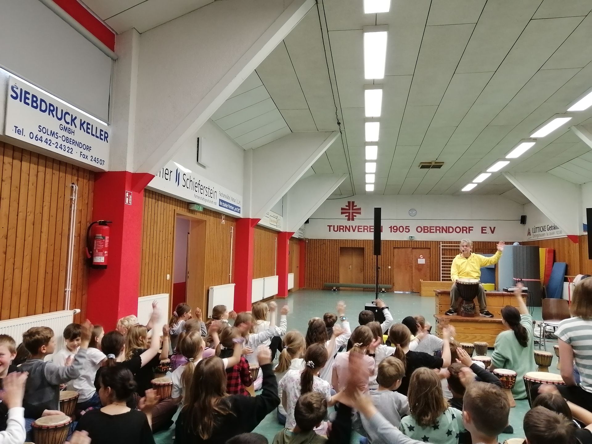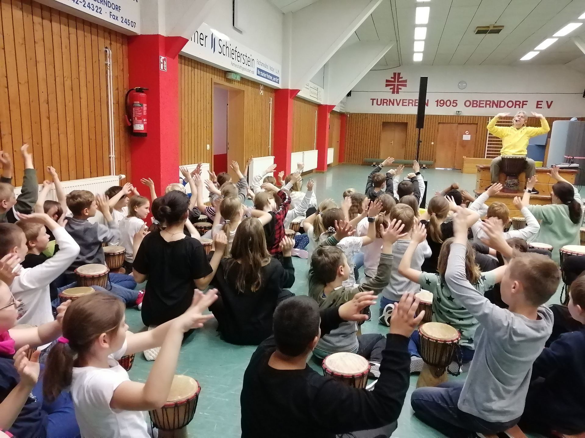 Am 15.05.2023 hat die Astrid-Lindgren-Schule Besuch von einem Trommelzauberer bekommen. In Workshops haben sie Tänze und Trommelstücke einstudiert. Die 1. und 2. Klasse hatte in den ersten beiden Stunden einen Trommelzauberworkshop und die 3. und 4. Klasse in der dritten und vierten Stunde. Dabei haben wir verschiedene Trommel-Rhythmen, Merksätze und Lieder gelernt. Dann hatte die ganze Schule am Nachmittag ein Trommelvorspiel vor den Eltern.